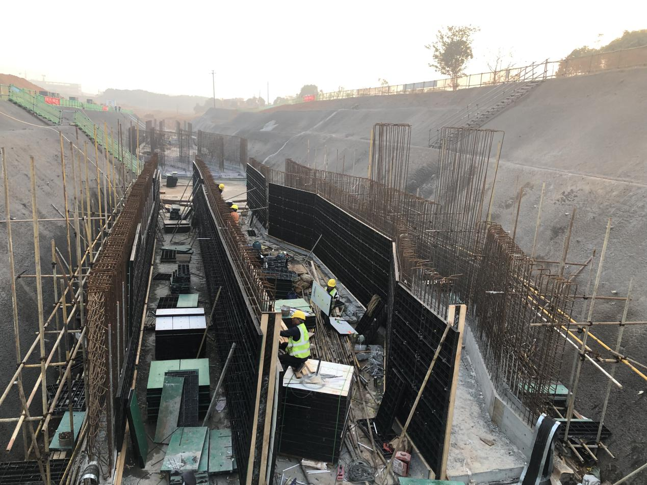 結合項目上的施工節(jié)點要求和總體的施工計劃兩條主線,各路段穩(wěn)步推進施工工作。目前三清山管廊(科創(chuàng)大街-V谷大街)段現(xiàn)已完成19倉到27倉的開挖、錨桿施工、噴錨工作,以及完成19倉、21倉、23倉的底板澆筑和25倉的底板鋼筋綁扎工作,預計到11月底能完成25倉的底板澆筑工作以及19倉墻身及頂板模板搭設。實訓基地規(guī)劃S3路(規(guī)劃R5路-常湖池大街)段現(xiàn)已完成人行道級配碎石施工200米,樹池石安裝80套,底層瀝青攤鋪完成,預計到11月底完成人行道透水砼施工。